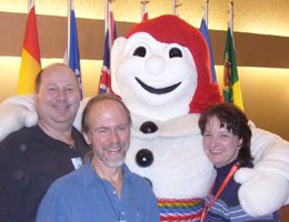 During the meeting, Quebec’s most famous mascot came by and gave the teams a welcome. Afterward, he walked through the crowd and stopped by our table. We were able to get our picture taken with him.