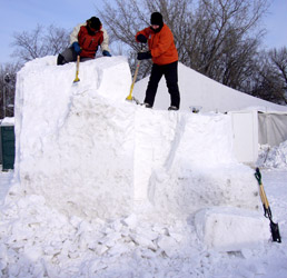 We figure that almost half the block has now been removed. Before you ask, we use this snow to provide ramps or ledges to stand on when working around the block. However, when the bobcat comes by, this snow-stool is usually removed. We have to guard them with our lives if we don’t want to lose them.