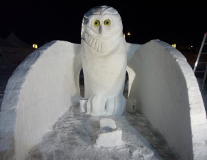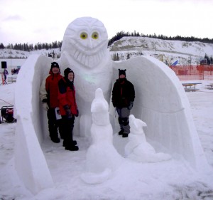 We finished up at about 10:30 just in time for the judges. The people had been giving their votes since 10:00am and would continue until 2:00pm. The weather waited until we finished and then got nasty. Wind gusts of 50-60km combined with a minor drop in the temperature created a nasty time. The public still came by, perhaps not in the same numbers as past years, and looked at the sculptures and took in other aspects of Rendezvous.