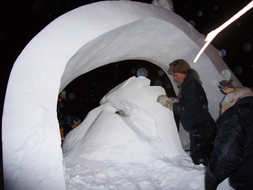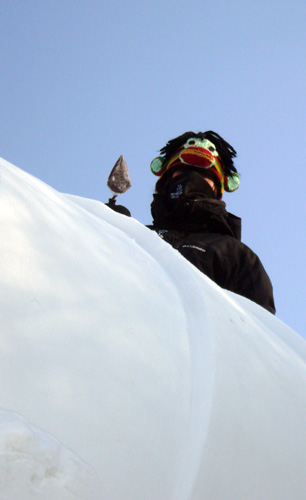 Day 3 has been a grind. The block is taking shape, but it has been slow going. The snow is quite hard and the team is feeling the effects of the smog, jet lag and cold weather.