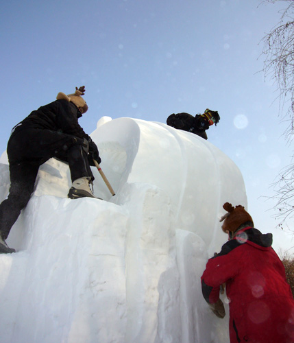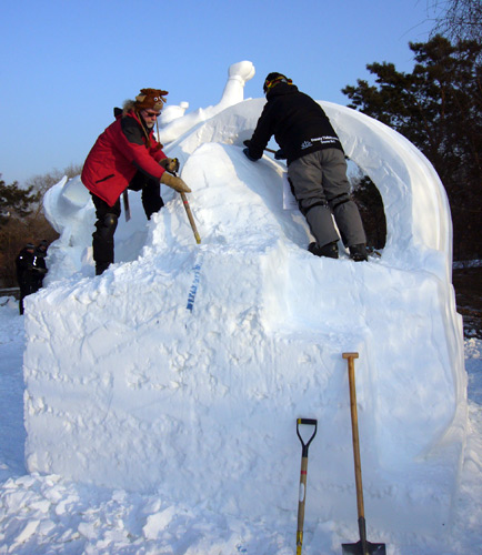 January 12, 2012 Harbin, News, Theressa Wright2012, canada, Carole Dagenais, china, cold, frostytidbits, harbin, Kim Strange, saskatchewan snow sculpture, sculpting, smog, snow, snow art, snow sculpture, team snow art, Theressa Wright