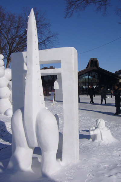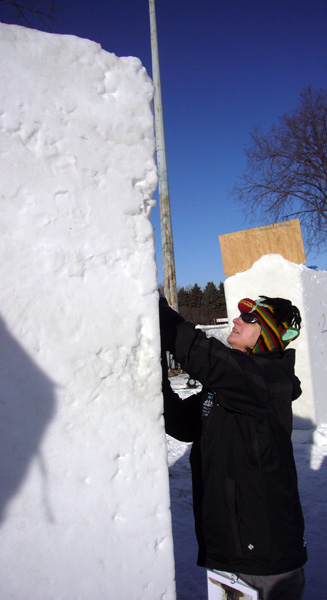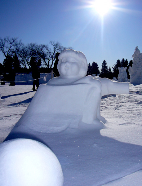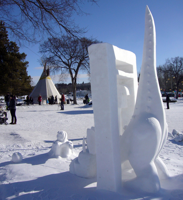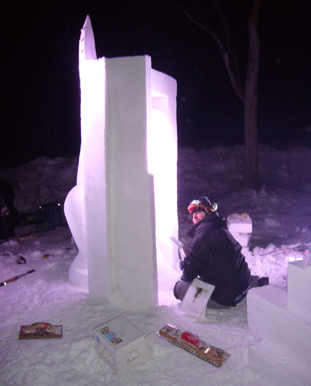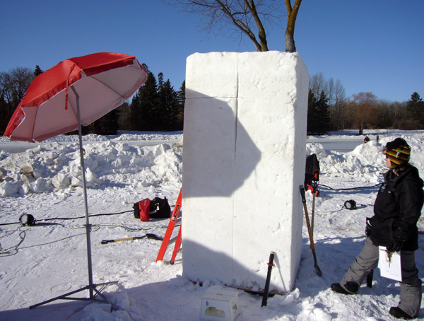 February 22, 2012 Edmonton, News2012, canada, edmonton, finishing, saskatchewan snow sculpture, sculpting, silver skate, snow, snow art, snow sculpture, sun, team snow art