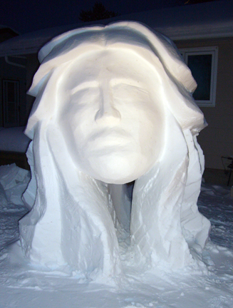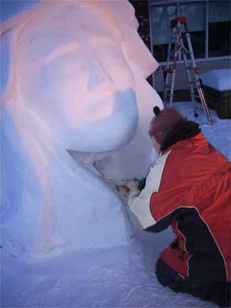 There comes a point when you are working on the block where you step back, take a look at what has been done and marvel at how much has been accomplished since the last time you looked. Between the two of us, we spent about 8 hours carving today and we’ve been able to expose the sculpture quite nicely.