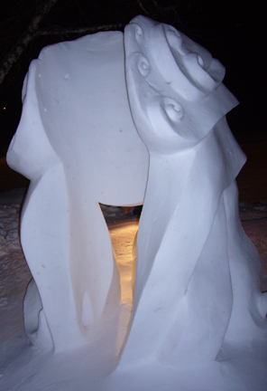 OK, you are wondering what is going on. Well, we are finally done with the sculpting part of our sculpture. Over the next day or two we are looking to do something we haven’t done before … and NO, it is not knock it down. You’ll just have to keep coming back for more, or if you know where we live, drive by and see it in person.
