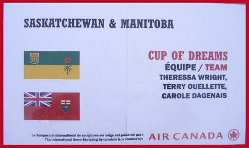 Team Snow Art representing Saskatchewan and Manitoba Winnipeg 2014 – Cup of Dreams Right Side Right Side Team Snow Art – Backside Backside Left Side Left Front Corner Team Snow Art posing beside Cup of Dreams Feb 17, 2014admin