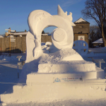 Well, our day started with a workout as the fire alarms rang just before 8am. There was a small fire in the kitchen area that was put out right away. That’s the good news, the not so good news was that we were asked to evacuate the hotel and we are staying on the 15th floor. Since we were just packing up to go carve, we had to wear all our gear down those stairs. There were some people in pajamas or without coats and it was COLD.