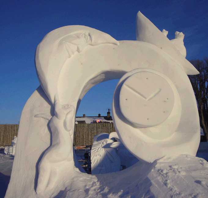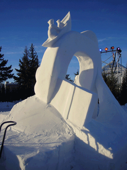 Well, our day started with a workout as the fire alarms rang just before 8am. There was a small fire in the kitchen area that was put out right away. That’s the good news, the not so good news was that we were asked to evacuate the hotel and we are staying on the 15th floor. Since we were just packing up to go carve, we had to wear all our gear down those stairs. There were some people in pajamas or without coats and it was COLD.