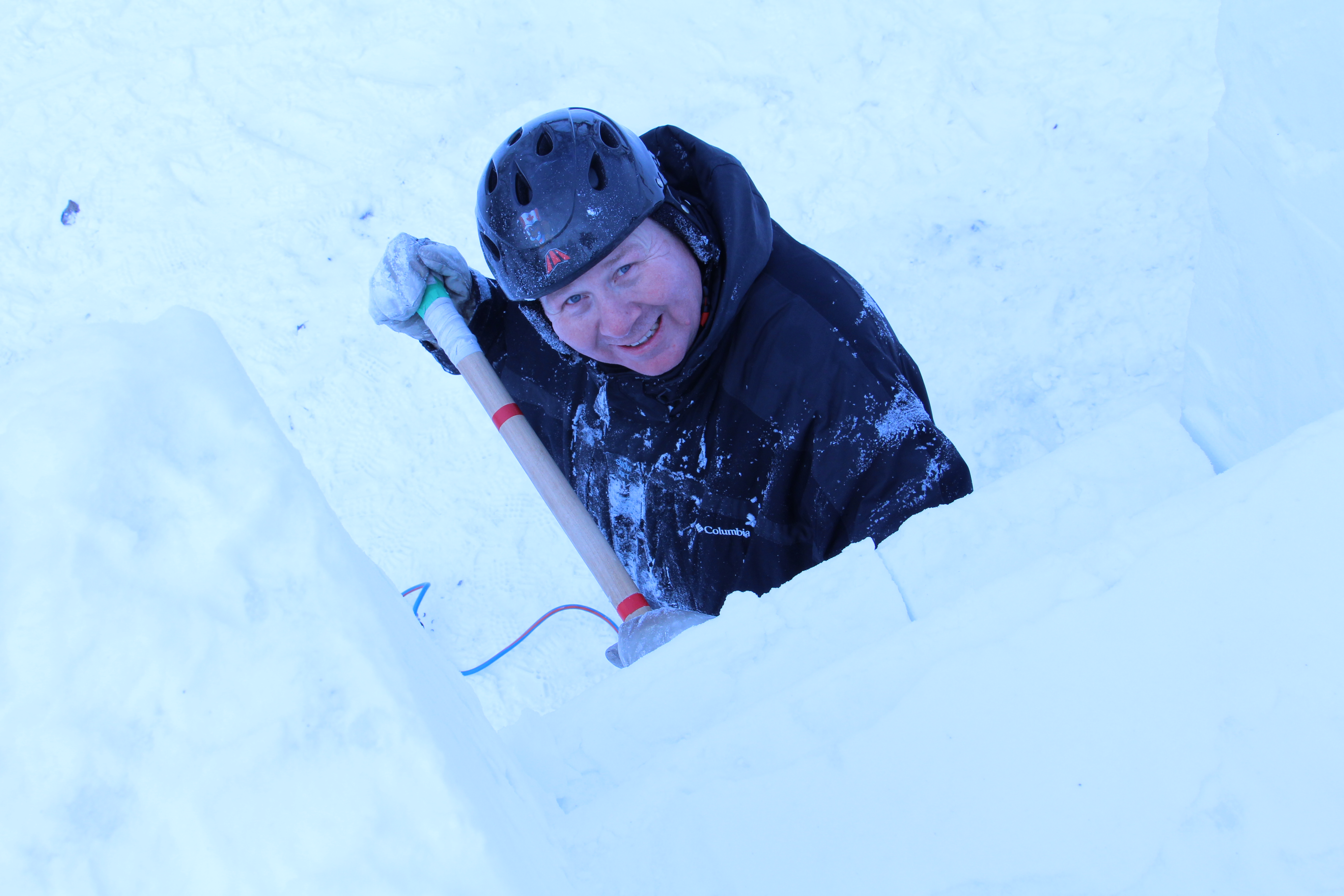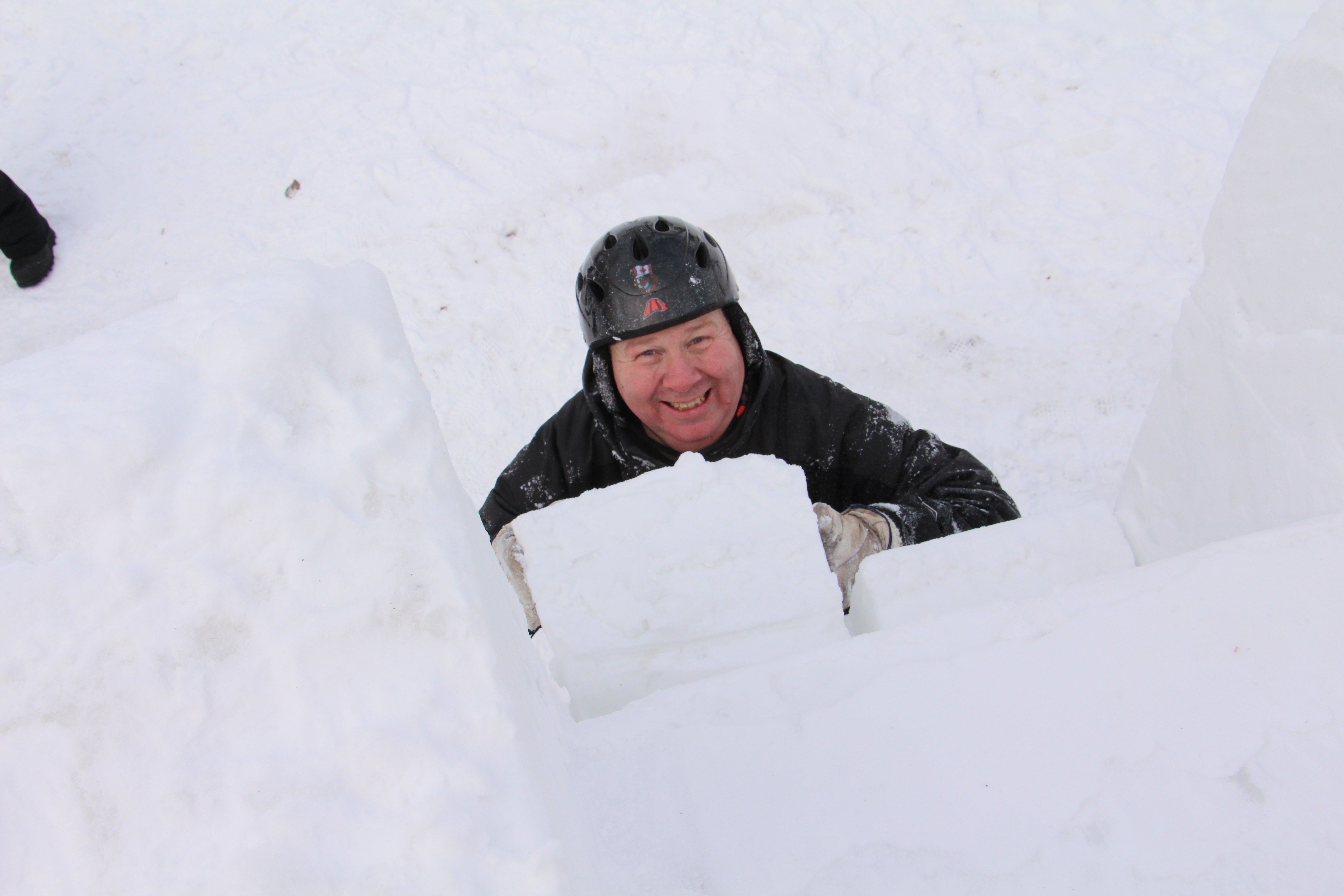Day 1 has come and gone. Once again Team Snow Art was the last to leave the site at 10:30pm. We are very happy with the results of the day considering the block was quite hard. The organizers allowed the teams to use chainsaws. The last time we used chainsaws was in 2006 in Charlottetown. We are expecting some warm weather over the next few days. This may cause us to change what we are carving as we need to protect the block from the sun.