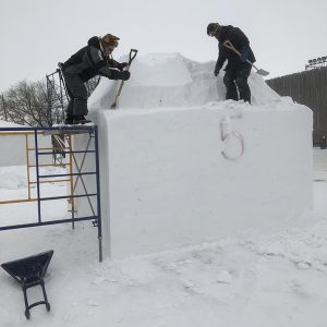 Our neighbors are Team Yukon and Team Michigan. Other teams that are participating are: Germany (2 teams), Steinbach MB, Argentina, France. We have carved with most of the sculptors at various events over the last few years. It is great renewing friendships and meeting new folks.